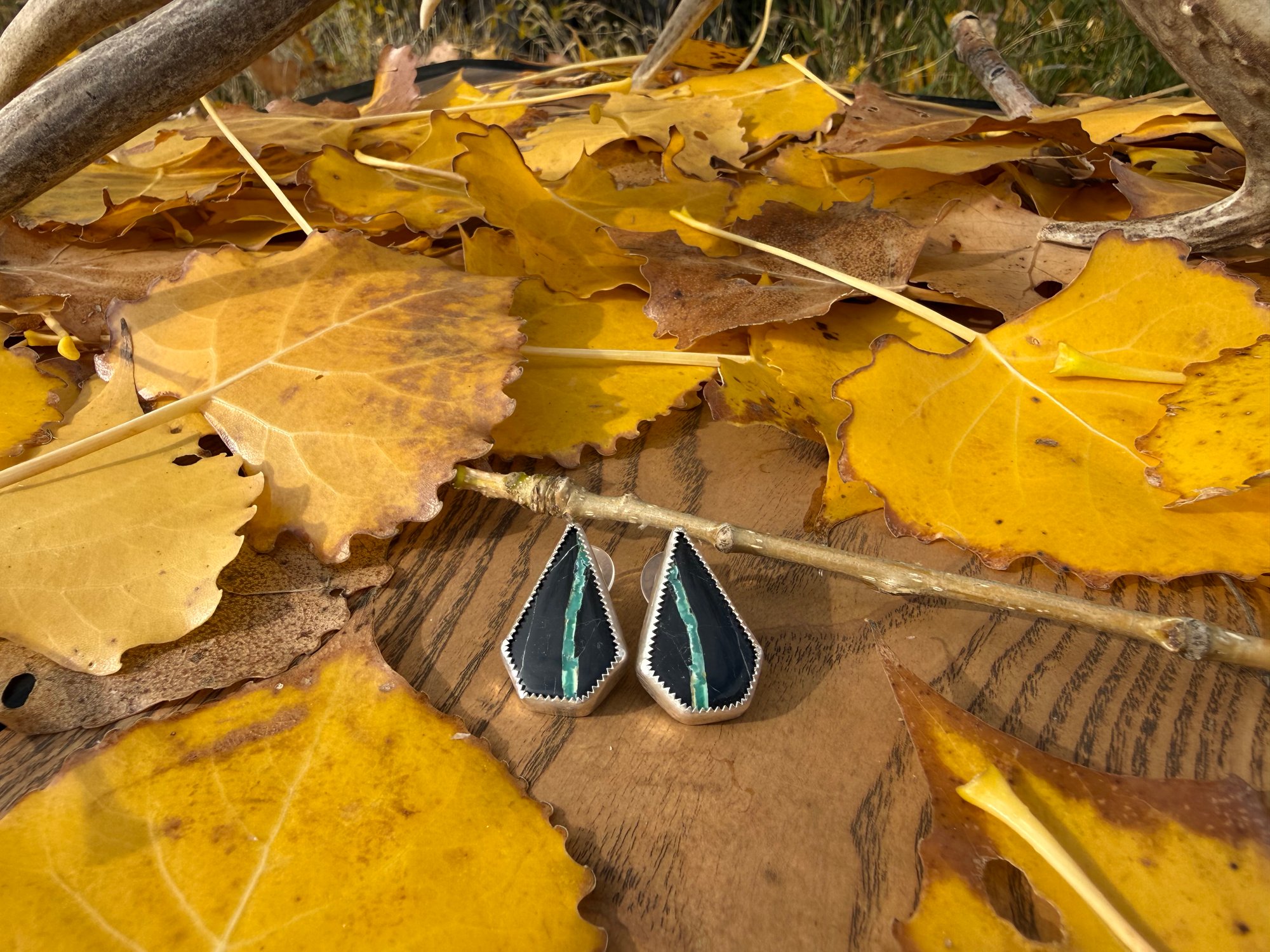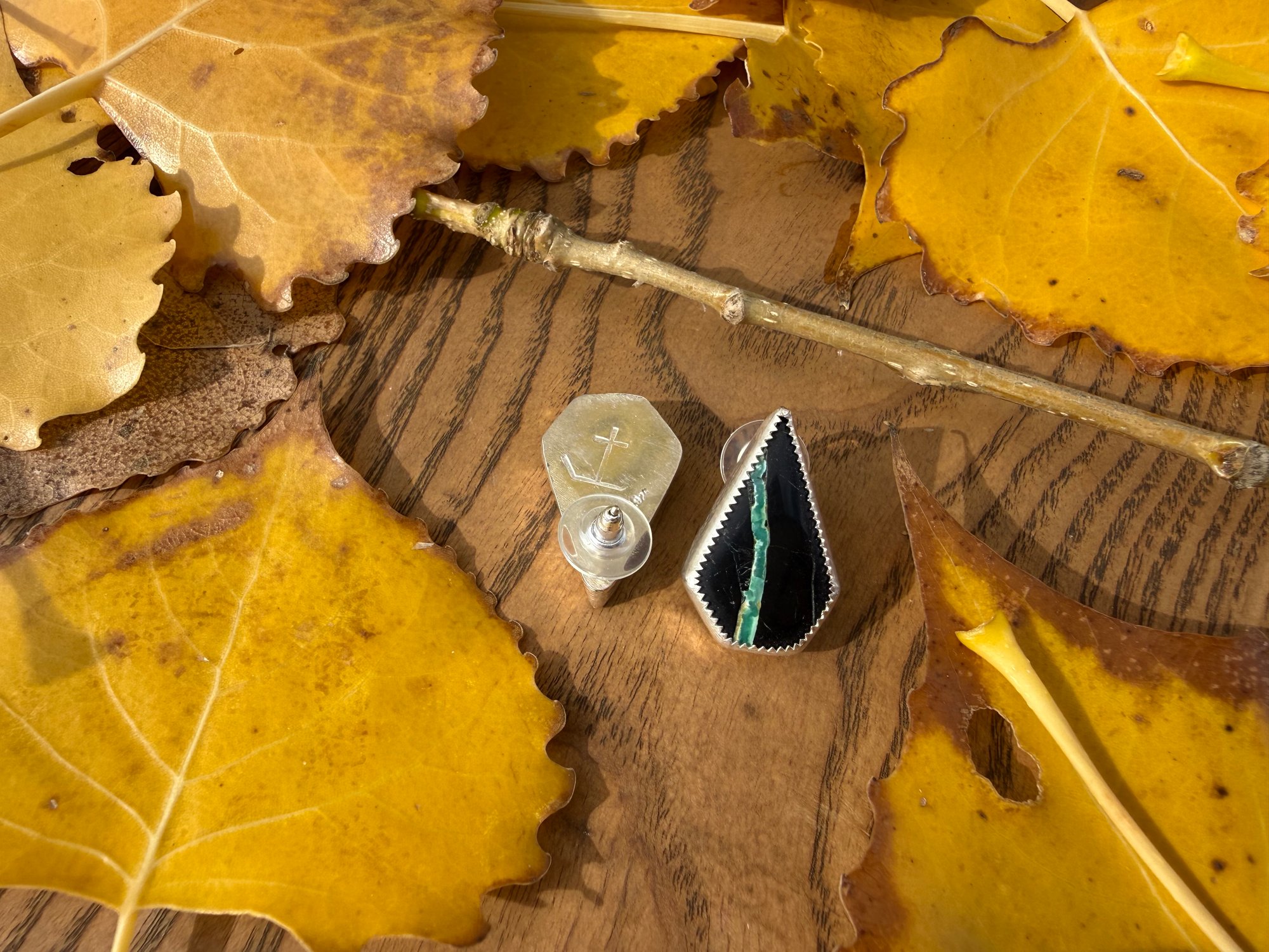 Black Buffalo Earrings, set in Sterling Silver. Both have makers mark on the back.
